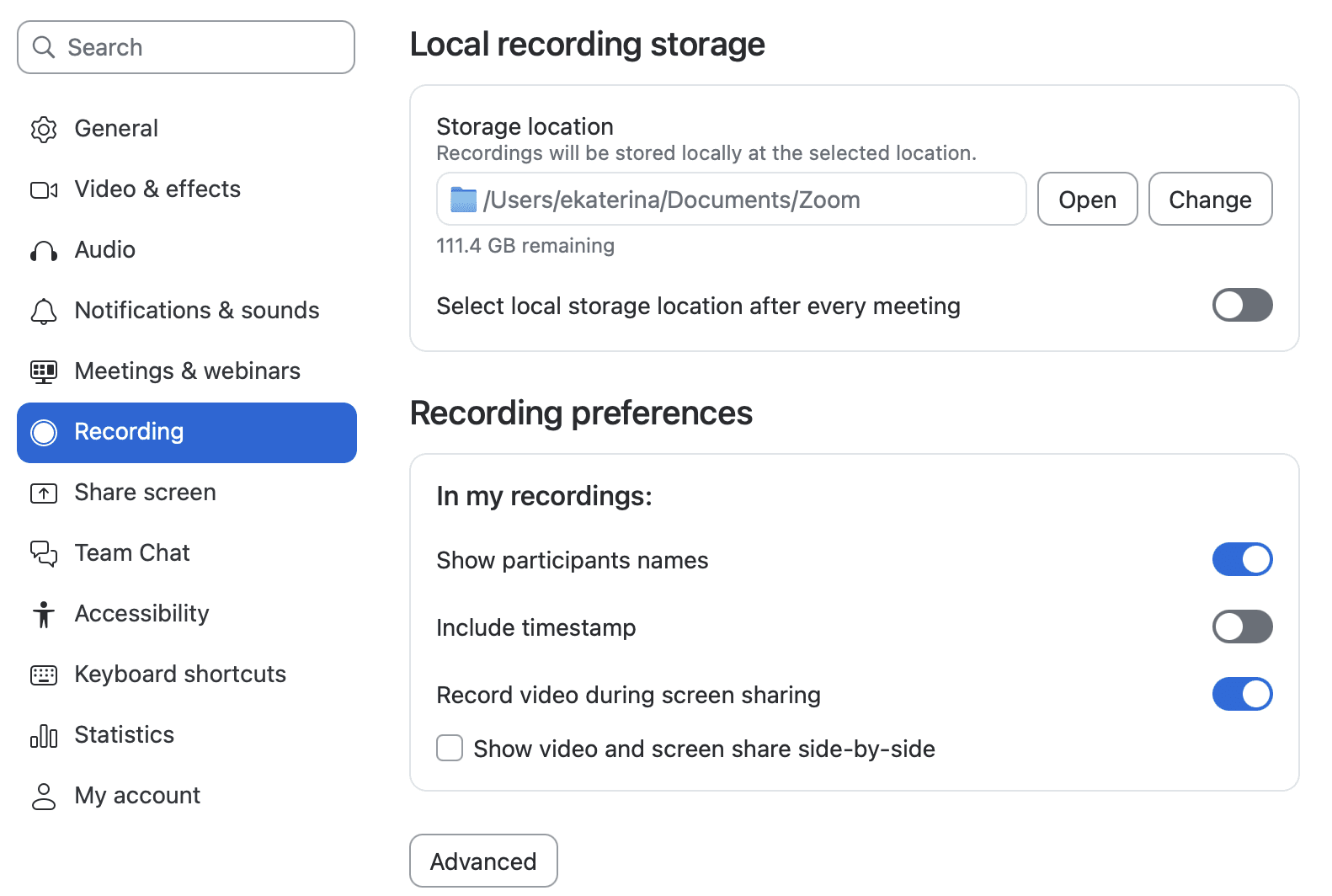 Local recording saves the video and audio file directly to your computer instead of Zoom's cloud. This means: